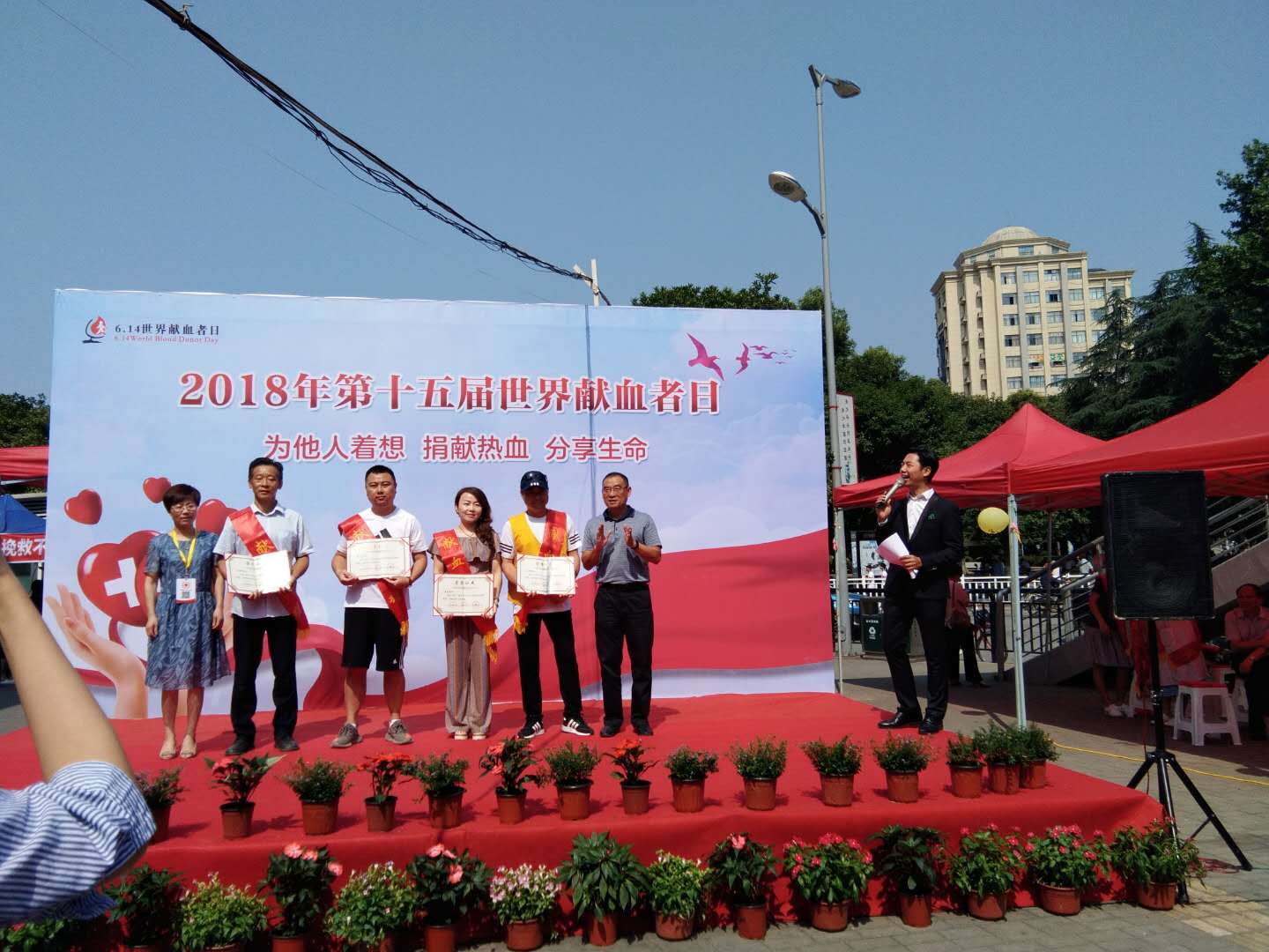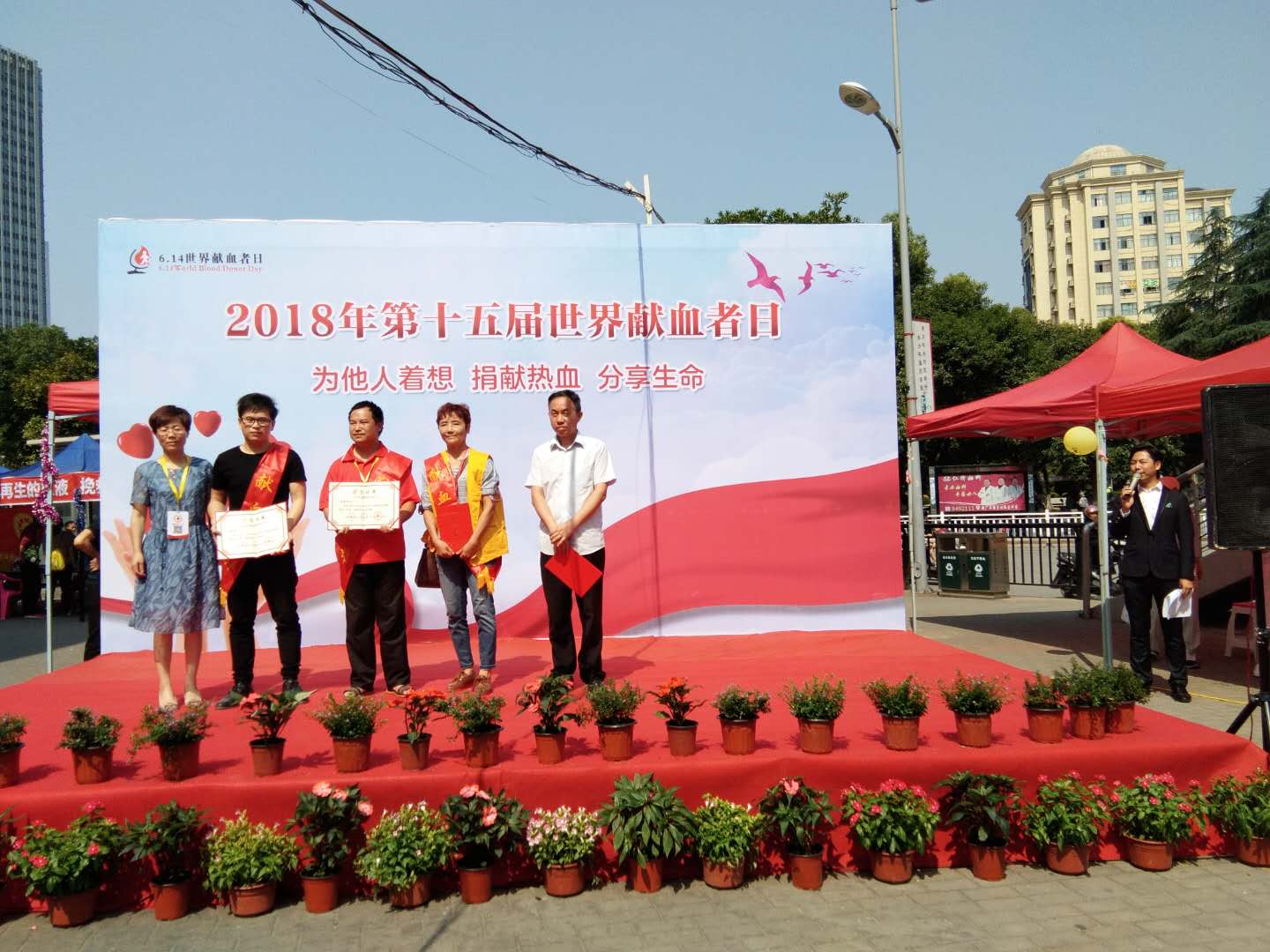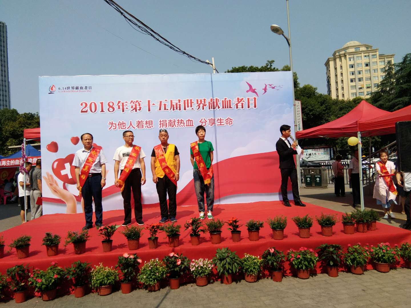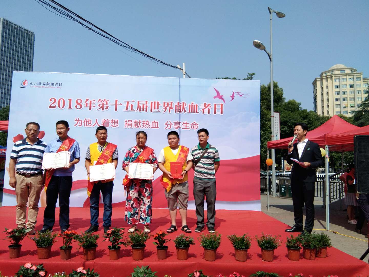 614日,瓷都人民广场被鲜花和爱心包裹,这天,无偿献血英模榜成为这个城市市民分享最多的风景照。第十五届“世界献血者日”活动暨全省献血英模表彰仪式在这里隆重举行,245名获得全省无偿献血金、银、铜奖获得者受到表彰,近300名市民现场参与献血活动。市文明办、市卫计委、市献血办等单位负责人出席活动并为获奖代表颁了奖。